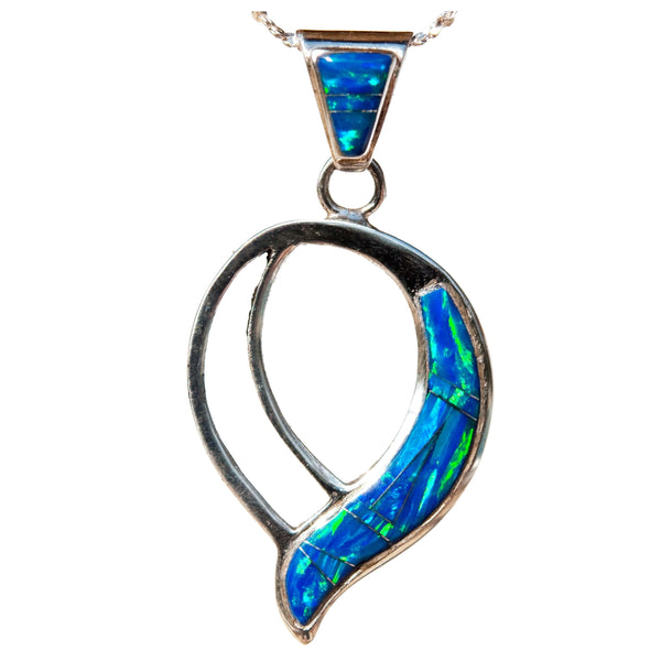 π Caribbean Blue Opal inlaid in a sterling silver pendant and earrings set π