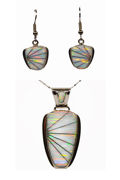 π FIRE OPAL SET - White Fire Opal Necklace and Fire Opal Earrings Set π