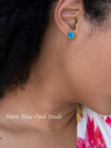 Sterling Silver Stud earrings set with opals