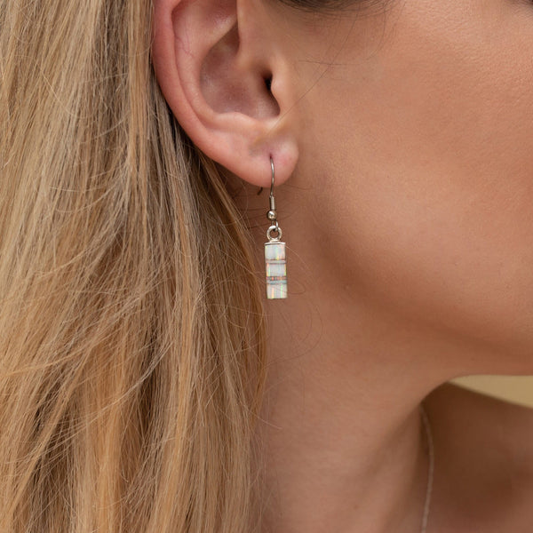 π White Fire Opal inlaid in a sterling silver pendant and earrings set π 715SET